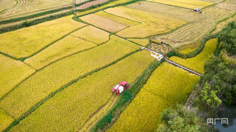 秋日,地处乌蒙山腹地的贵州省毕节市黔西市,当地农民抢收稻谷,确保秋粮颗粒归仓,田畴沃野处处是丰收的忙碌景象。