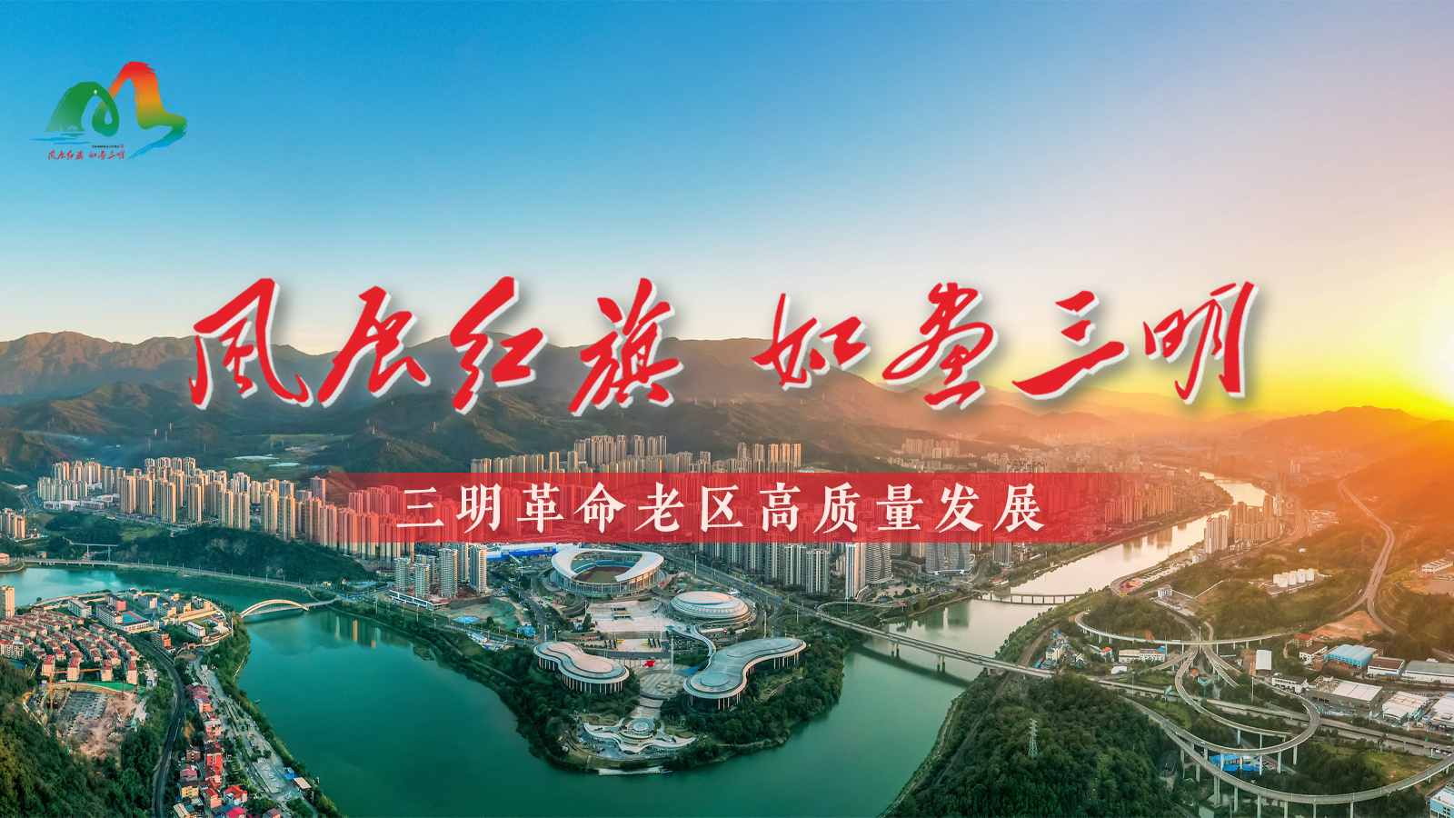 风展红旗拼搏依旧,如画三明向新而行。