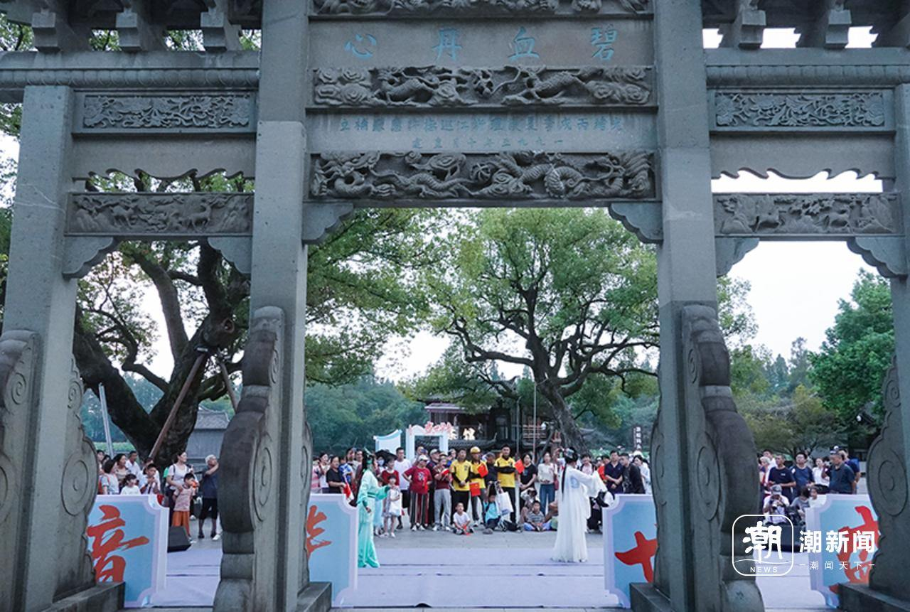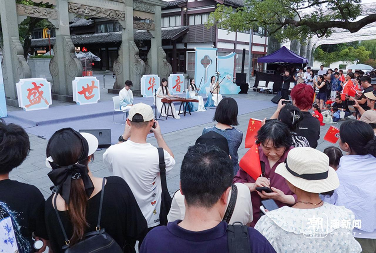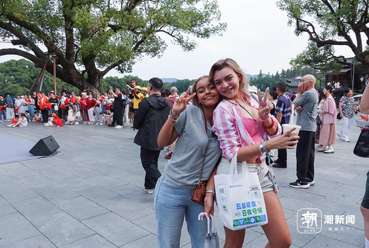 下午3点,随着开场节目《湖鼓韵影》气势如虹的鼓点响起,活动正式拉开帷幕,瞬间点燃现场气氛。杭州学军中学教育集团文渊实验学校的同学们紧接着登场,以一首《万疆》展现青春风采,清澈歌声与飒爽舞步中,尽显新时代青年的蓬勃朝气,引得现场观众连连称赞,驻足观看的塞尔维亚和马来西亚的游客感慨道,“今天刚从无锡到杭州,上午去看了六和塔,下午逛西湖。虽然很热,但西湖很美,更幸运的是碰到了今天的演出,很精彩。”