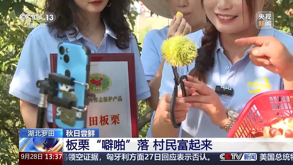 秋天,很多地方都有打板栗的习俗。在湖北省黄冈市罗田县,板栗已经成熟了。除了打板栗,当地还把直播间搬到了田间地头,让网友们下单尝鲜味。