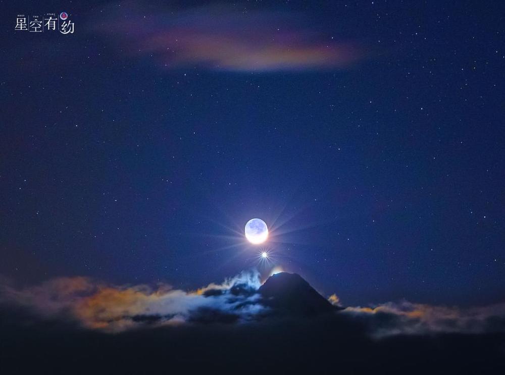 2023年3月24日,在云南梅里雪山拍摄的金星伴月。(王晋 摄)