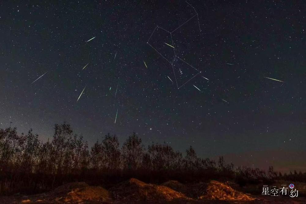 2020年10月21日,在黑龙江大庆拍摄的猎户座流星雨(多张叠加)。(刘成山 摄)