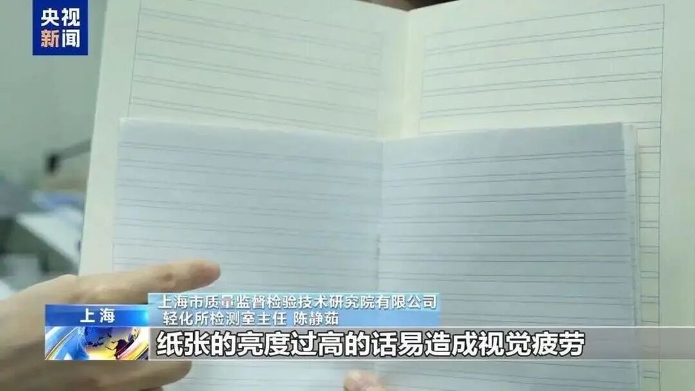 上海市质量监督检验技术研究院有限公司轻化所检测室主任 陈静茹:小朋友在做作业的过程中,纸张的亮度过高,易造成视觉疲劳,对眼睛的刺激比较大,长期接触对视力是有不利影响。